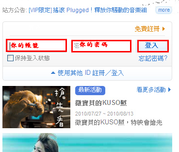 7.回到部落格首頁,輸入帳號跟密碼,然後點登入
